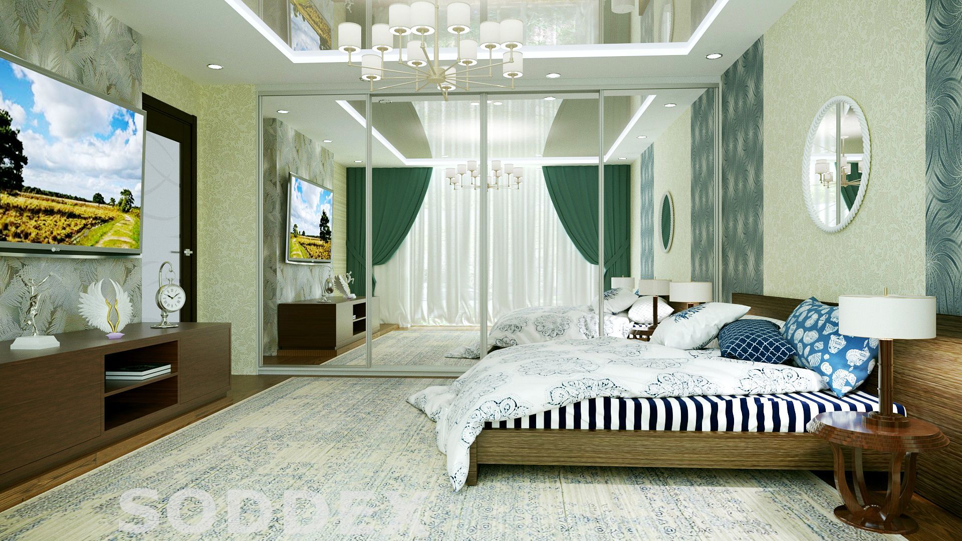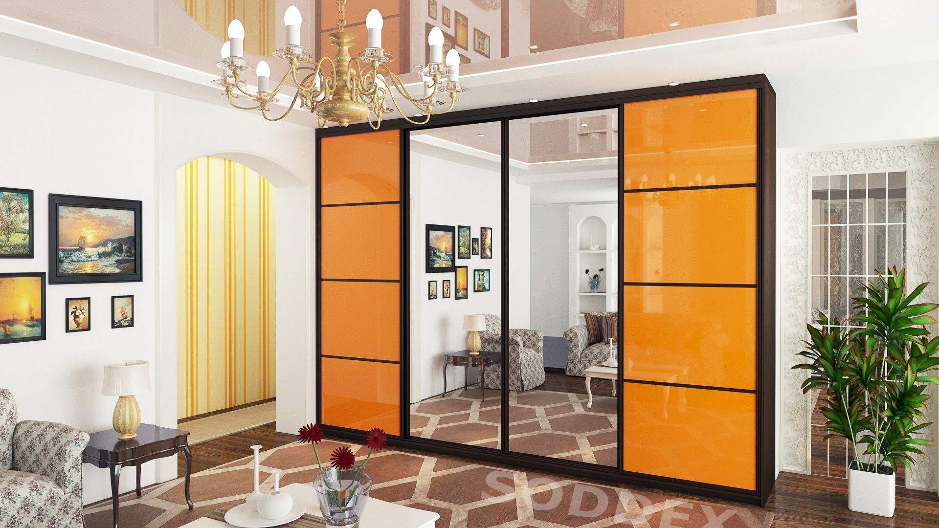 Зеркальные – прекрасно смотрятся в любых помещениях.